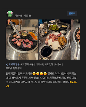 부드러운 육질과 풍부한 숯불 향이 조화를 이루는